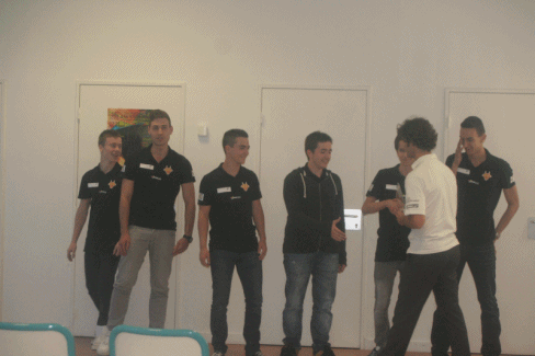 17h00 - Complètement abattus, nous avons rejoints la même salle que celle du briefing de ce matin. Nous n'y croyions plus. Une fois toutes les équipes arrivées, une personne a annoncé chaque position des équipes en partant de la 24e. Mais alors que l'on se rapprochait du podium, nous n'avions toujours pas entendu le nom de notre équipe. Puis la quatrième place étant annoncée, une joie immense est parvenue en nous, non seulement car nous étions assurés d'être sur le podium, mais aussi parce que les deux autres équipes de notre classe étaient aussi sur le podium !!! Une joie partagée donc, entre tous les élèves de la 1reS2, et notre professeur. Finalement, nous avons terminé premiers. Ce fut un des plus grands moments de joie de toute notre vie !!!
